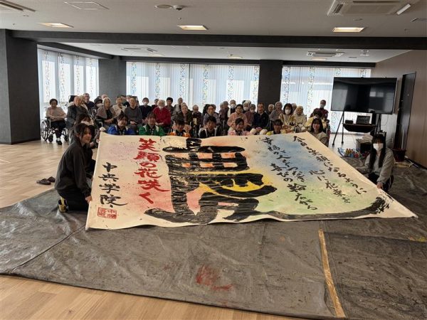 2026/2/15 書道部 特別養護老人ホーム、アウル鎌ヶ谷ネクストにて、書道パフォーマンを行いました。ス