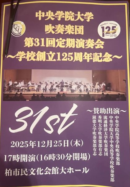 2025/12/25 中央学院大学吹奏楽団第31回定期演奏会「学校125周年記念」が行われました。