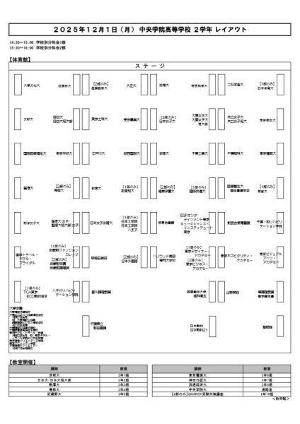 12/1(月)6限・7限の時間に進学コース・特進コース2年生対象【校内進路ガイダンス】を実施しました。44大学・23専門学校の中から2校選び、学校の特徴や学部、入試方法など説明を受けました。