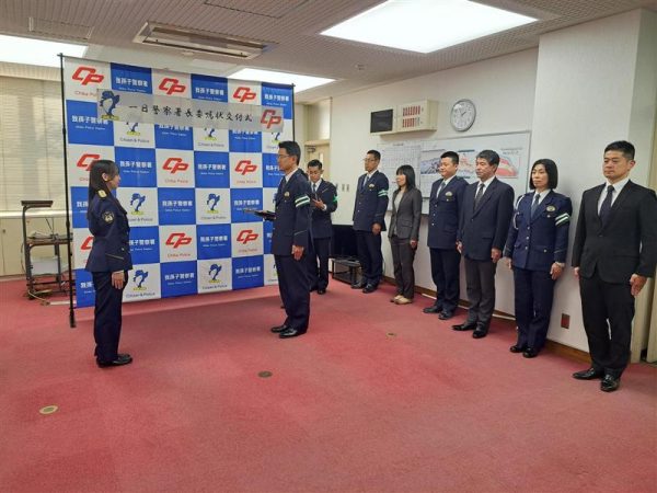 2025/12/15 年末年始特別警戒・冬の交通安全運動出動式において、生徒会長の澤村みさきさんが一日署長に任命されました。